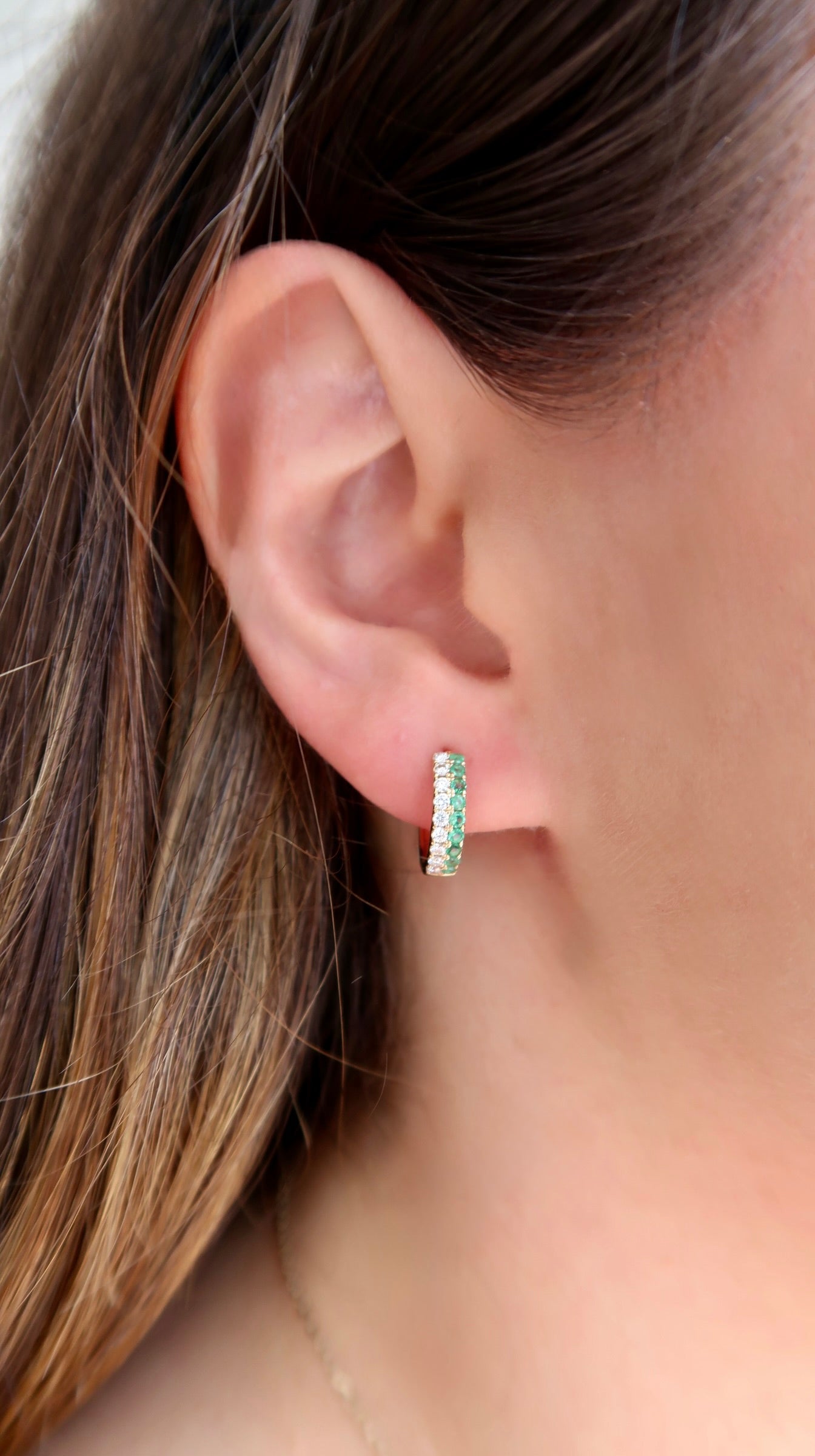 Diamond and Emerald Hoops 14k