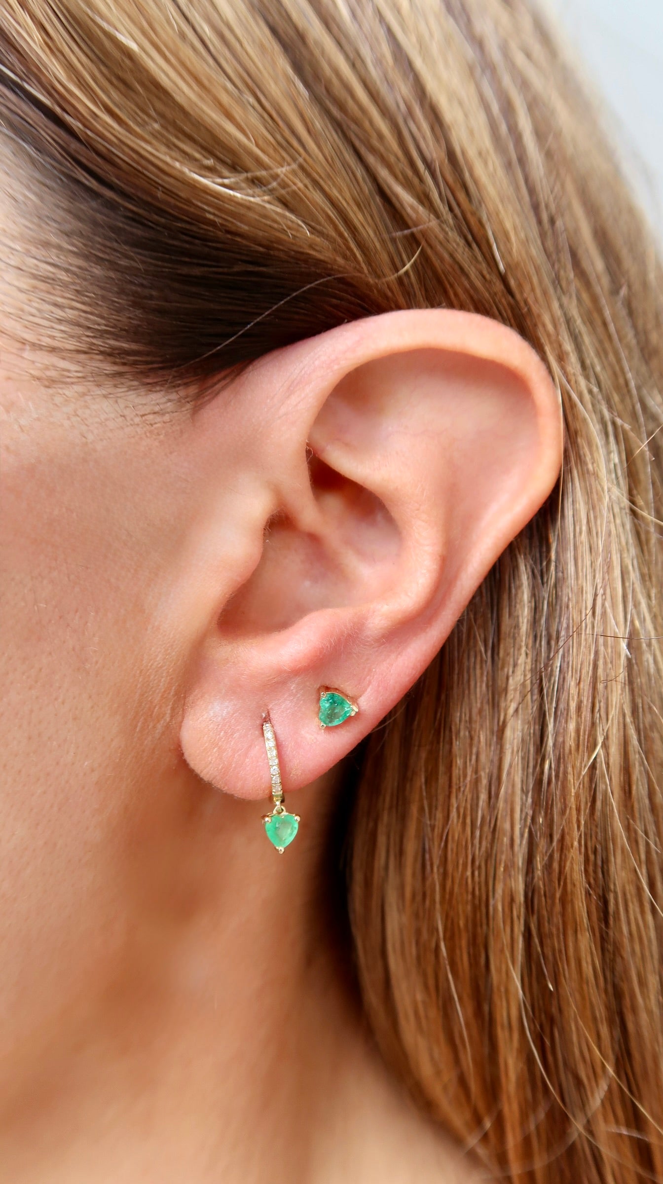 Emerald Heart Diamond Gold Hoop 14k