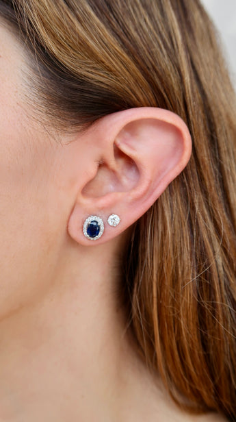 Oval Sapphire Diamond Halo White Gold Studs 18k