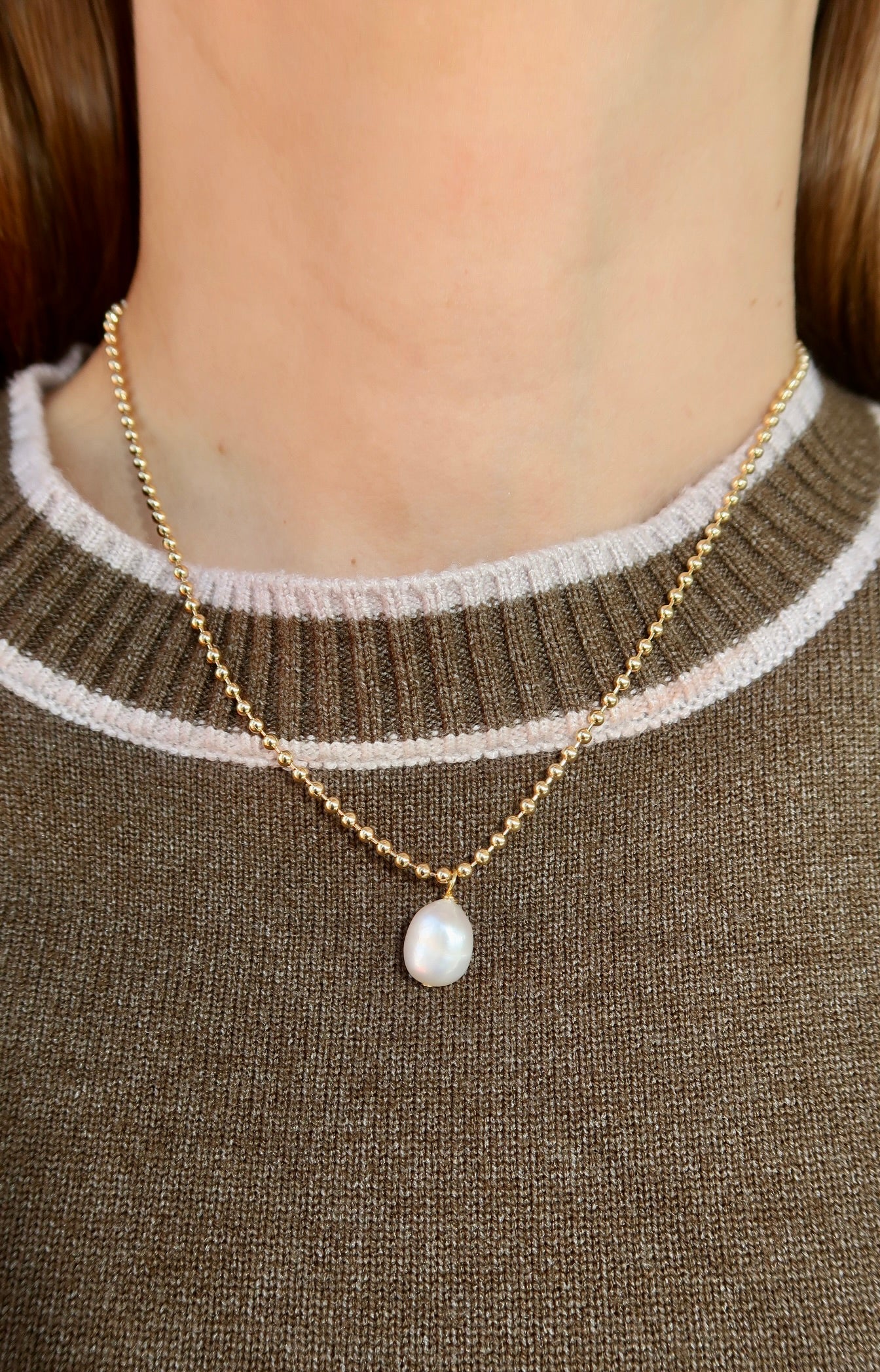 Single Pearl Charm Gold Necklace