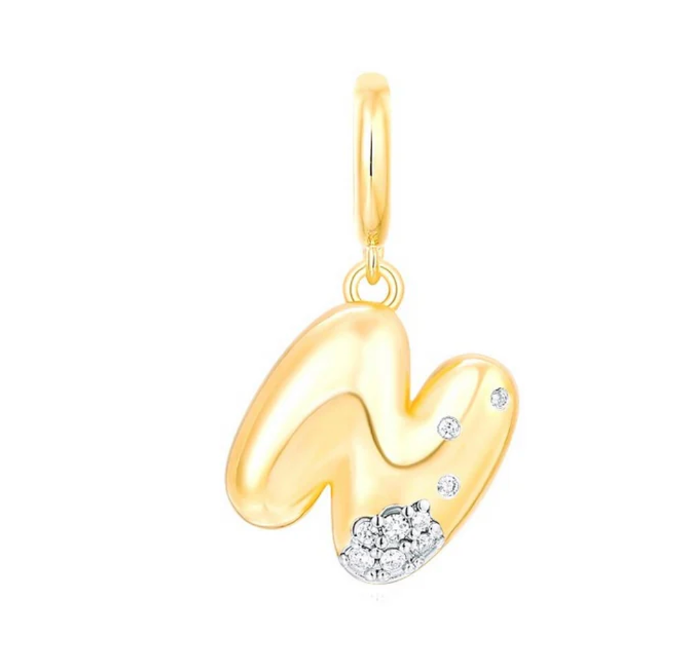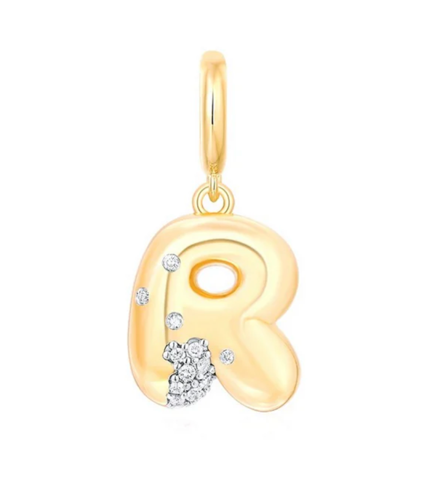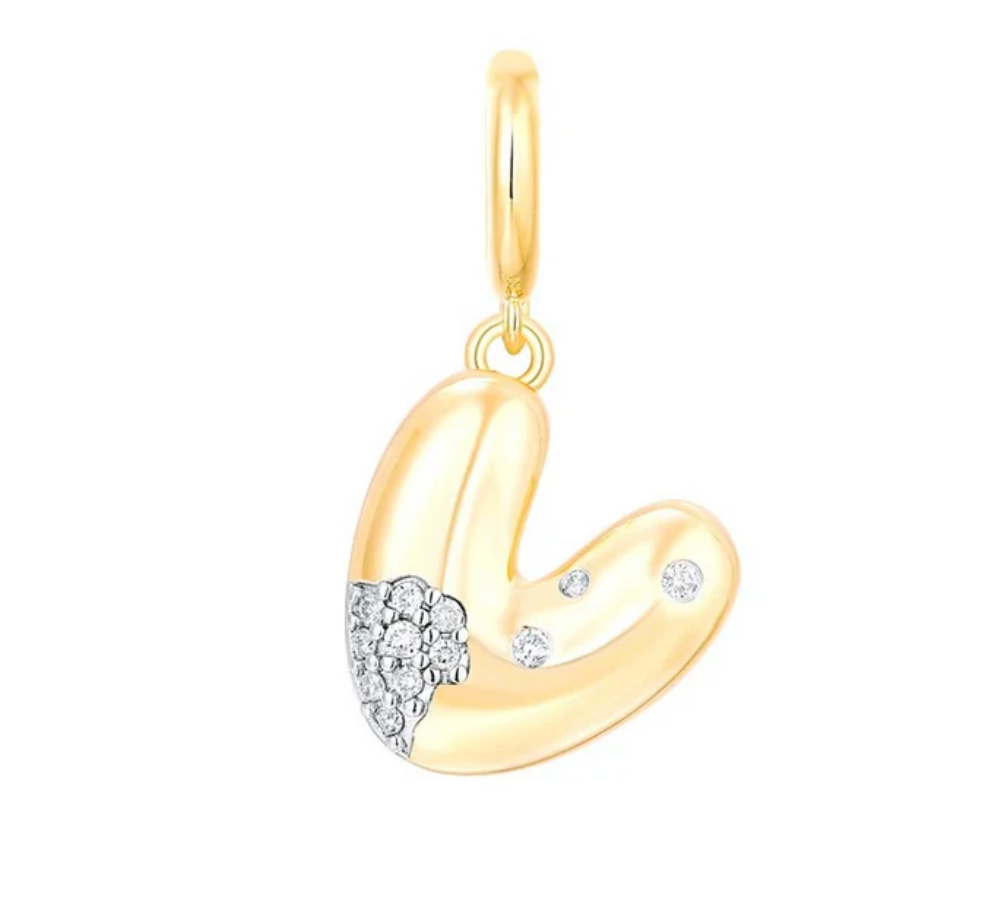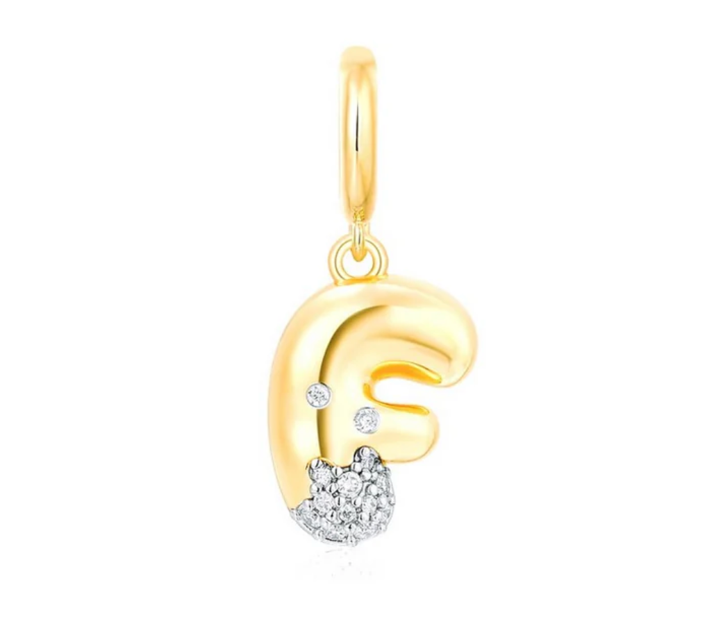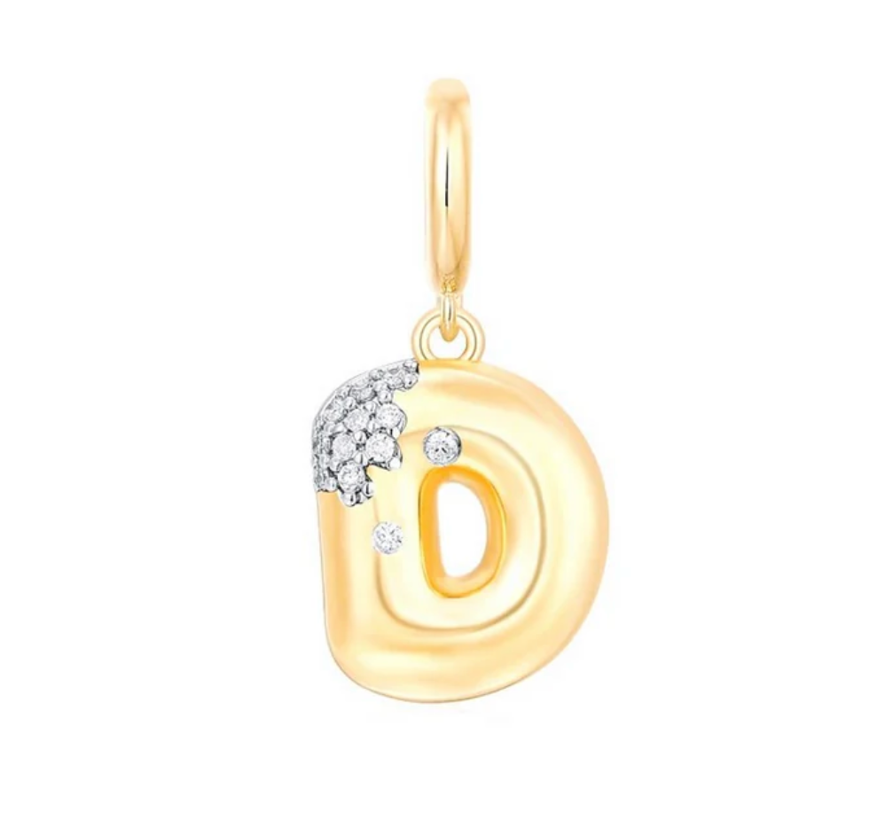 Bubble Initial Diamond Gold Charm 14k