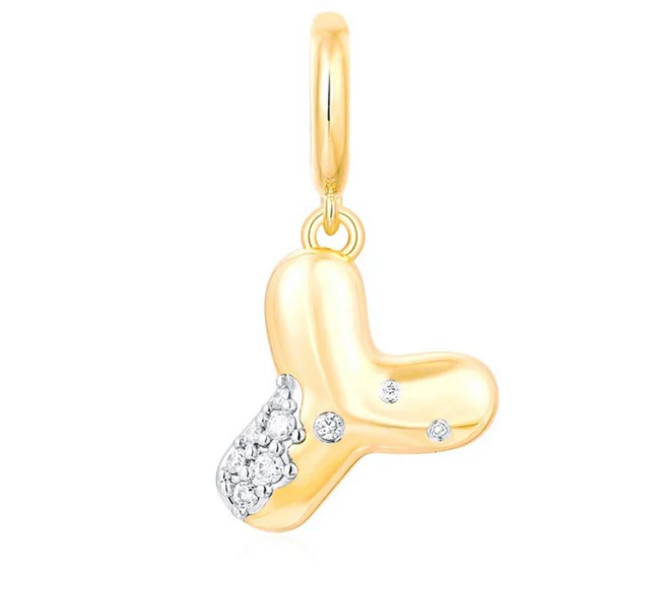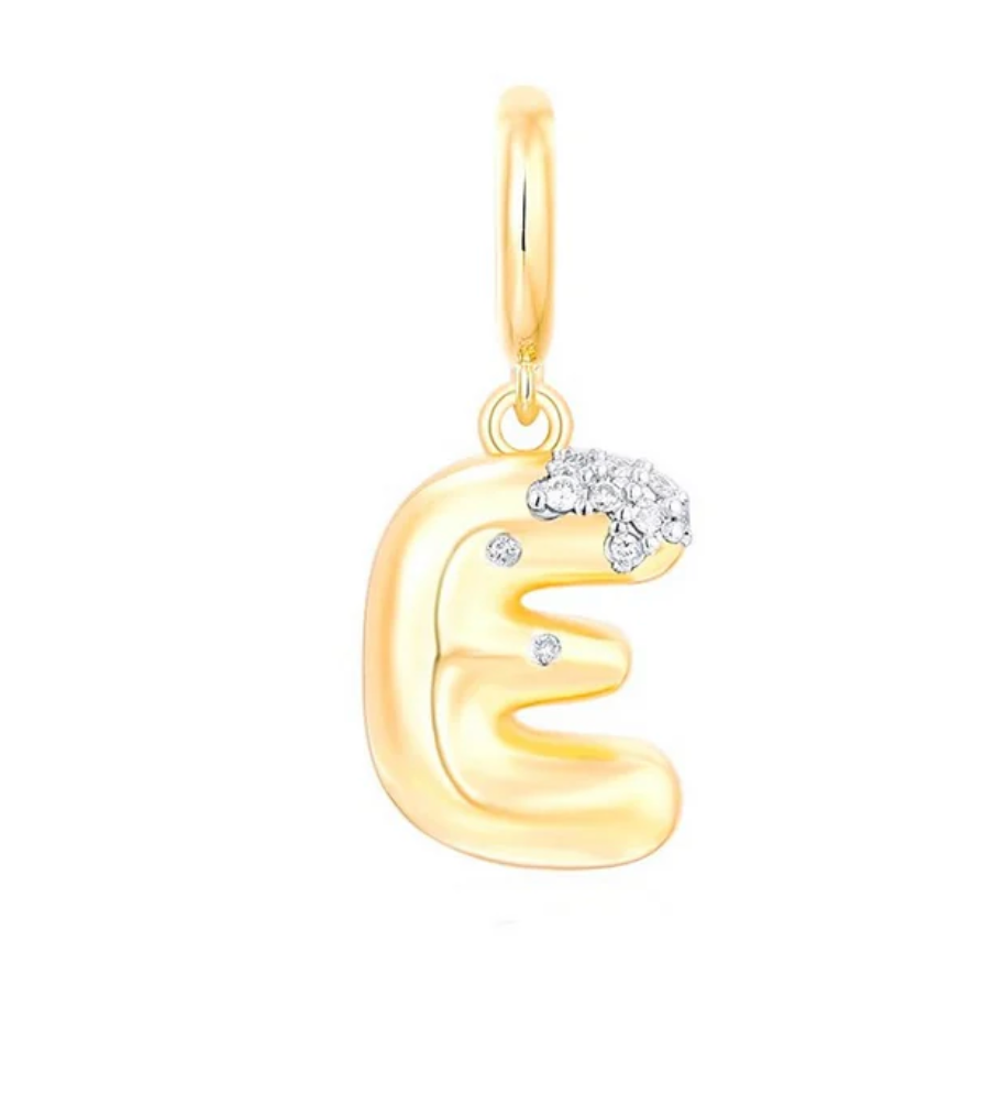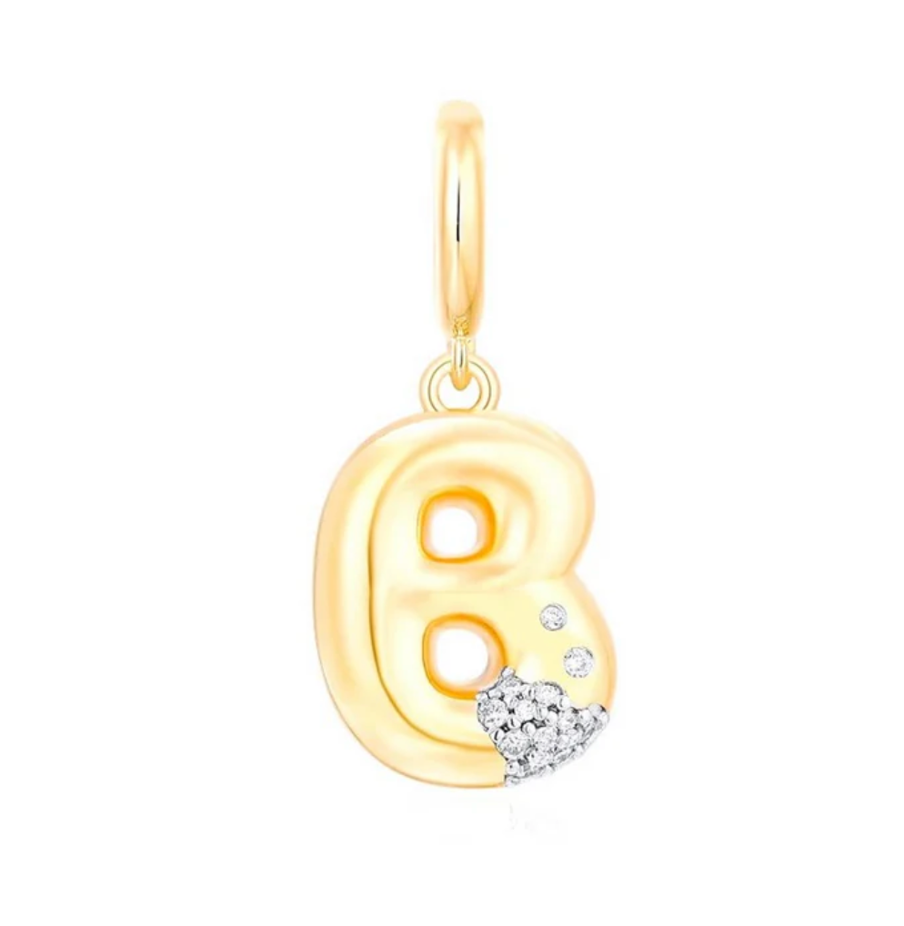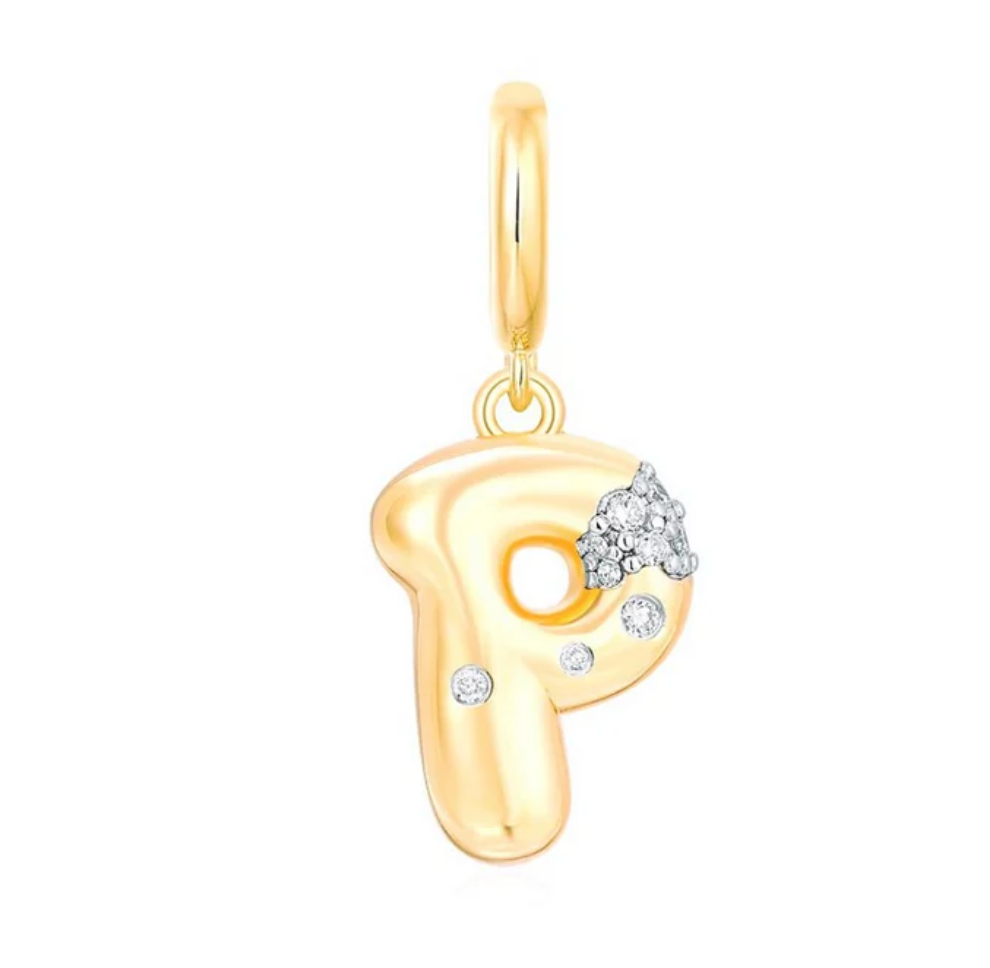 Bubble Initial Diamond Gold Charm 14k