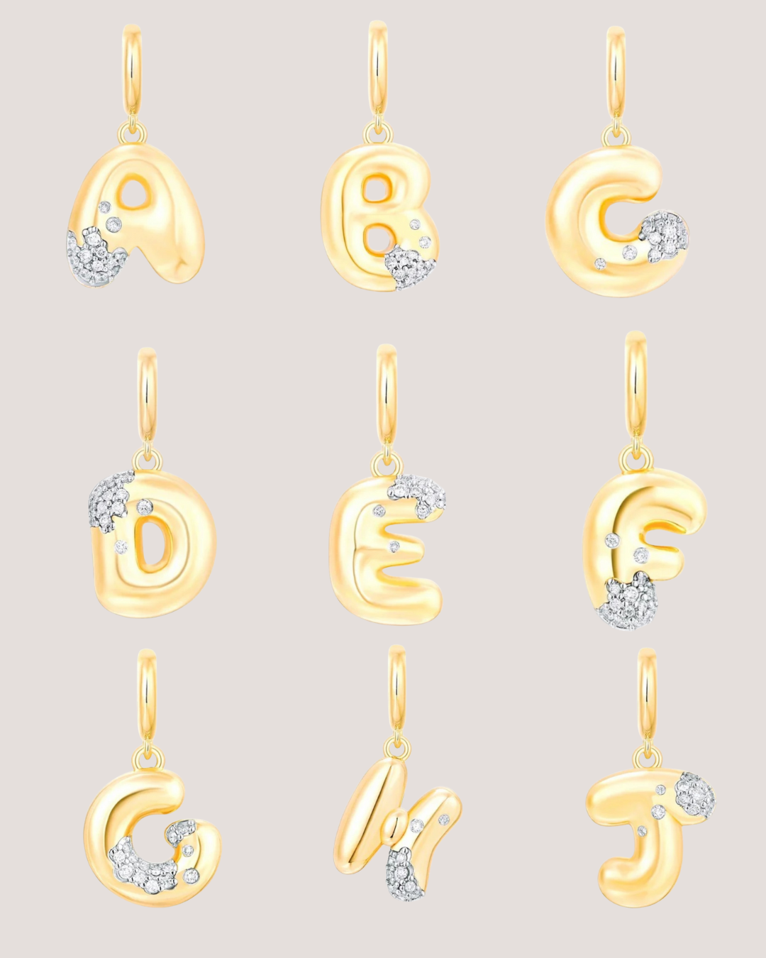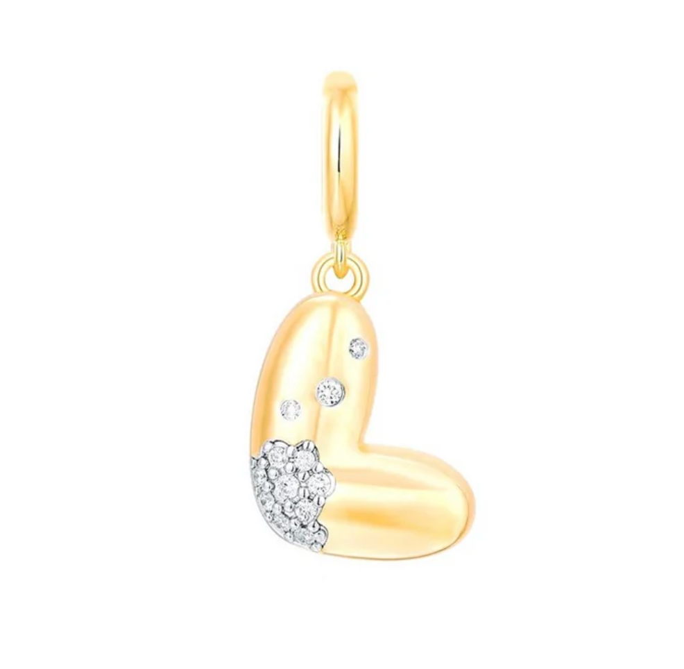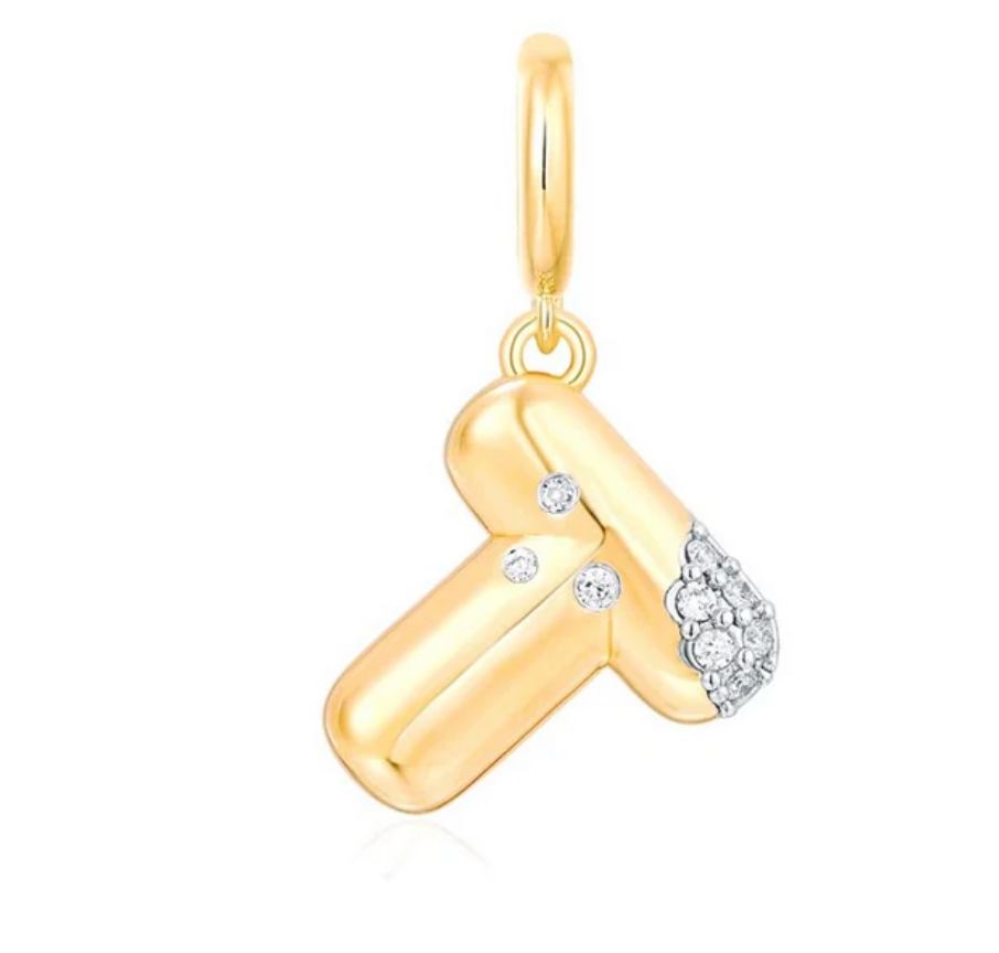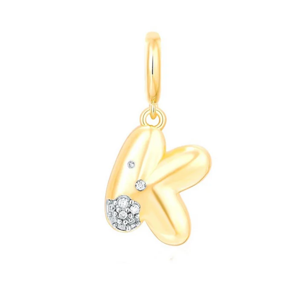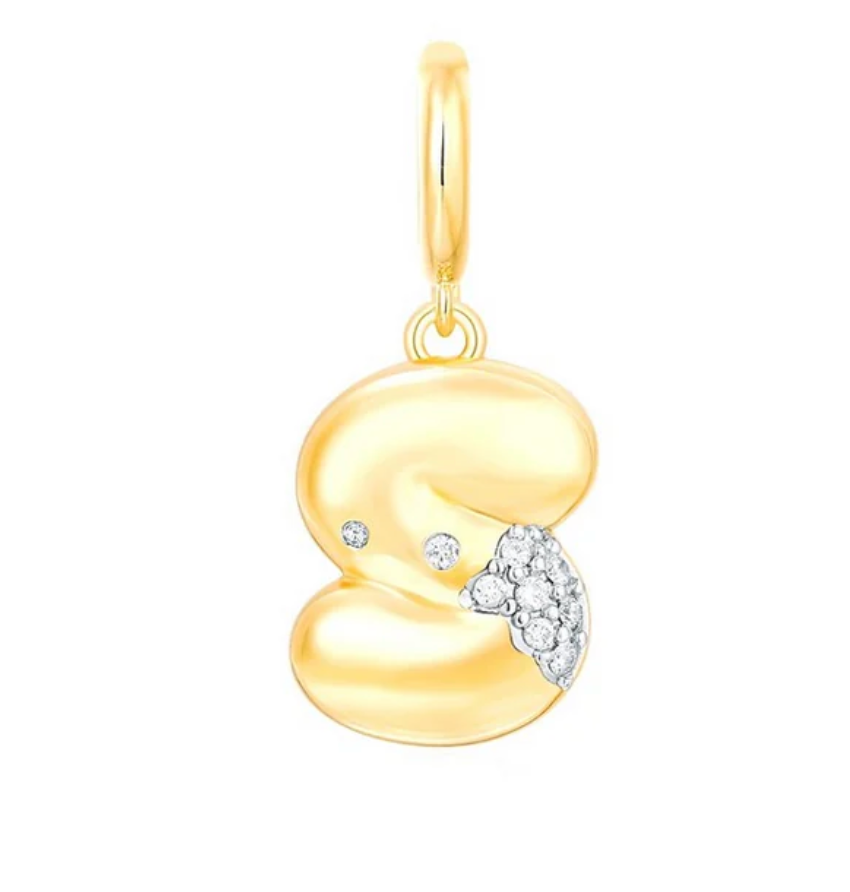 Bubble Initial Diamond Gold Charm 14k
