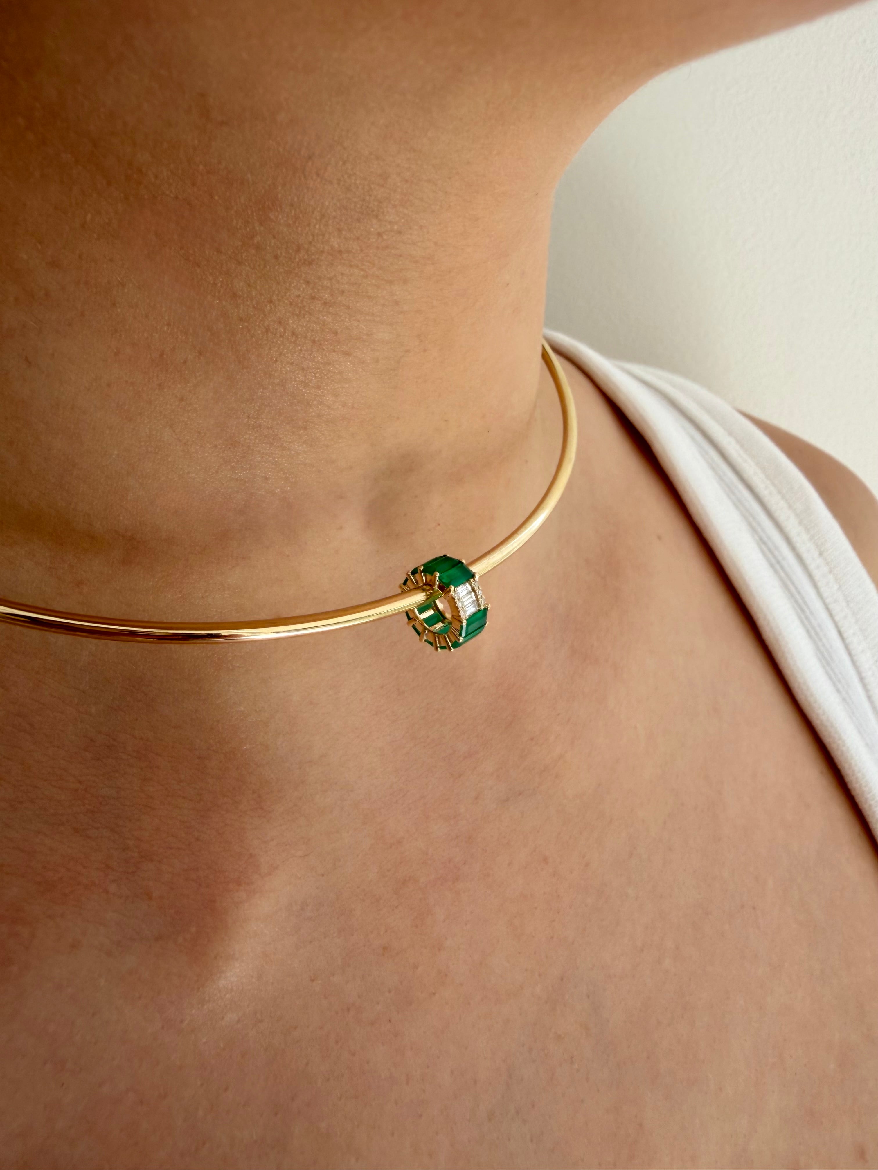 Emerald Baguette and Diamond Rondelle Charm 14k