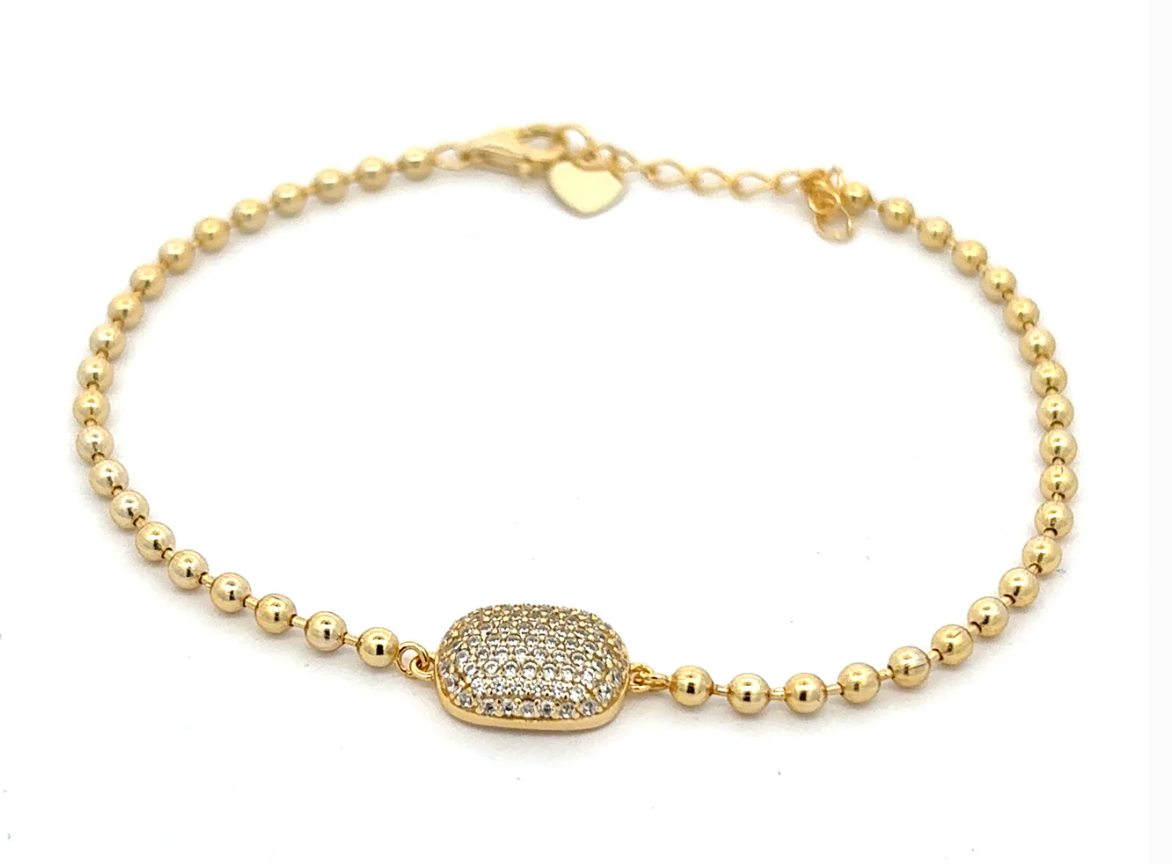 Pave Charm Gold Cut Bead Bracelet
