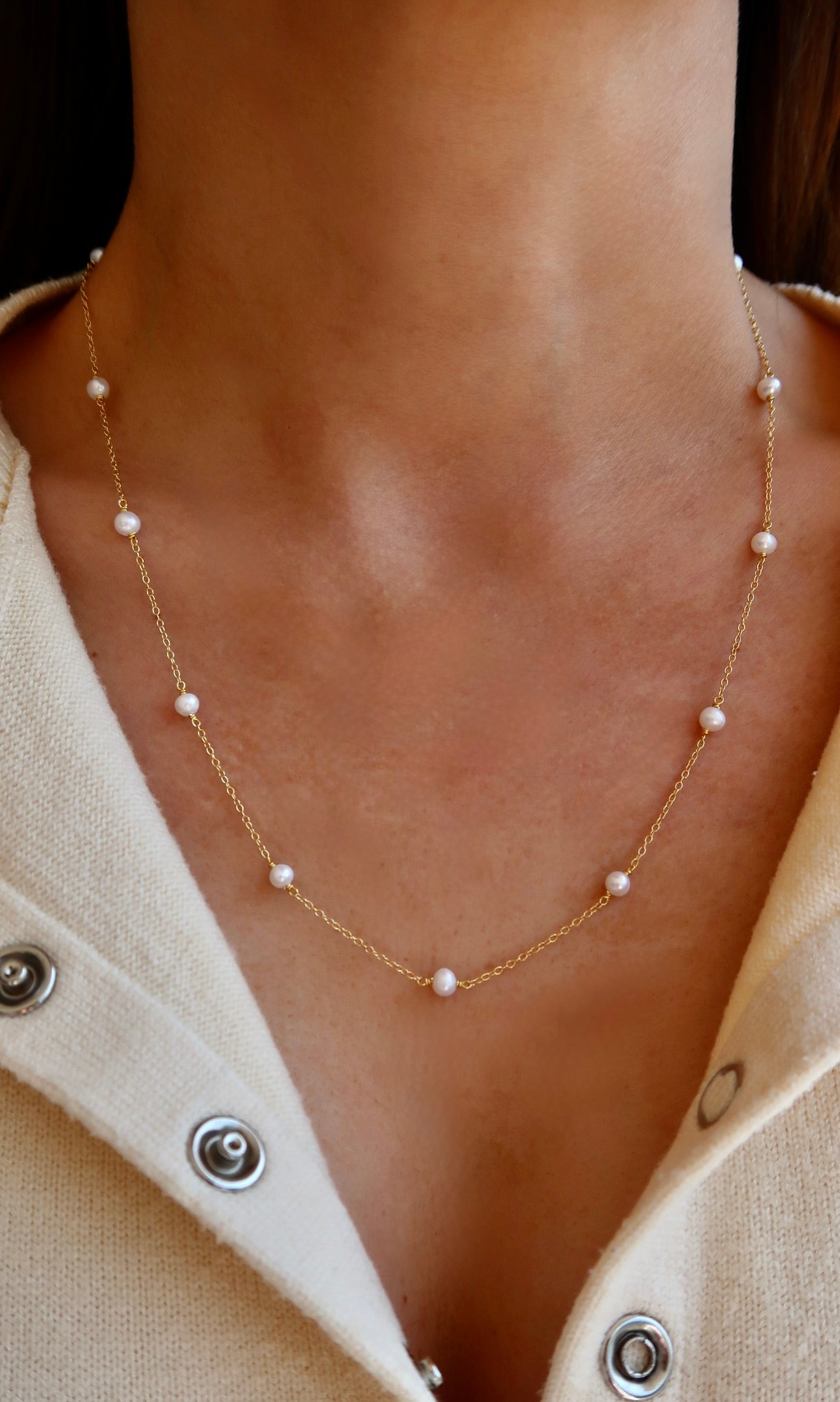 Material: Collar de plata con baño de oro de 14k con perla
