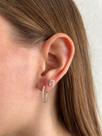 Pink Sapphire Yellow Gold Studs 14k